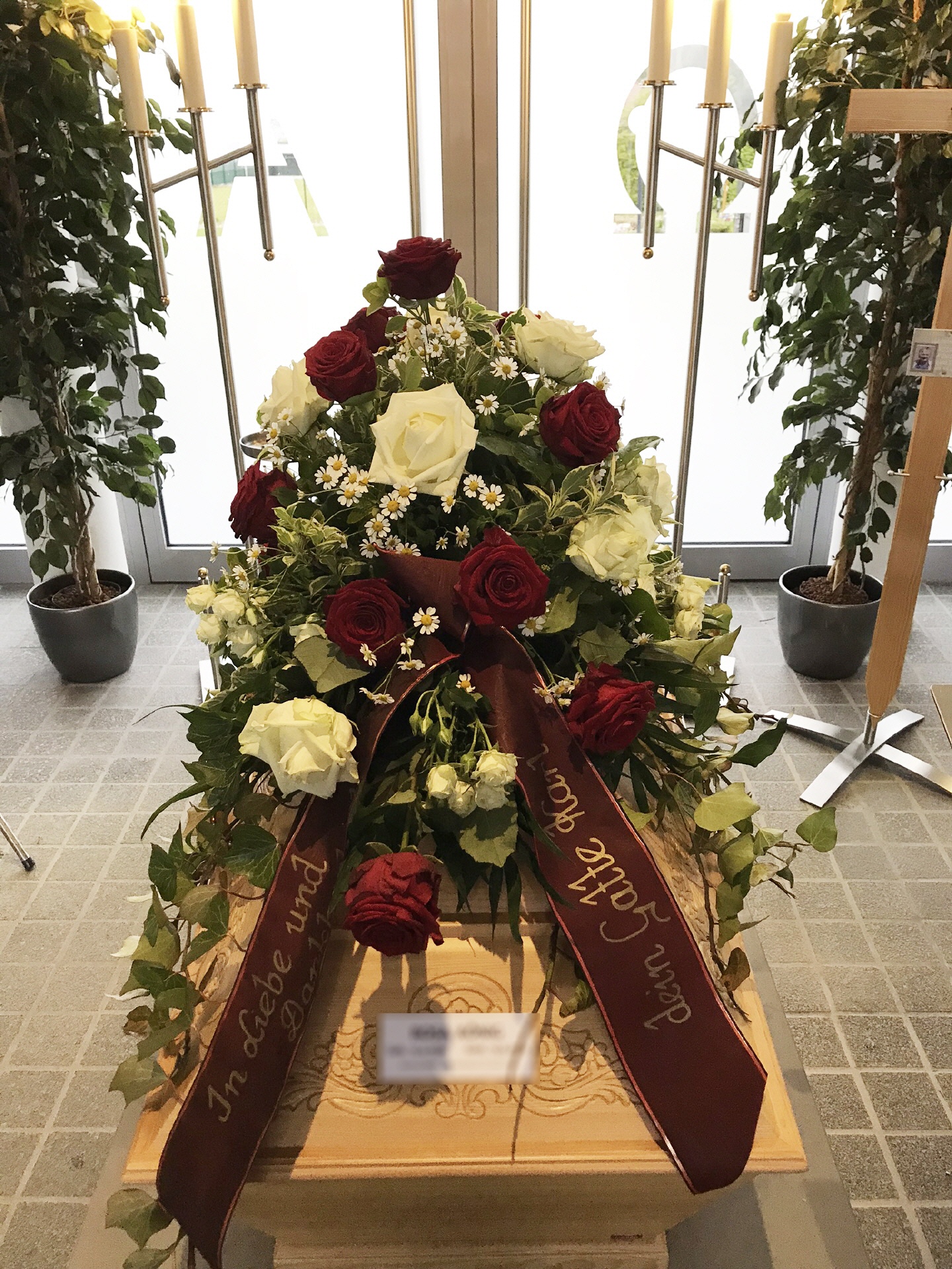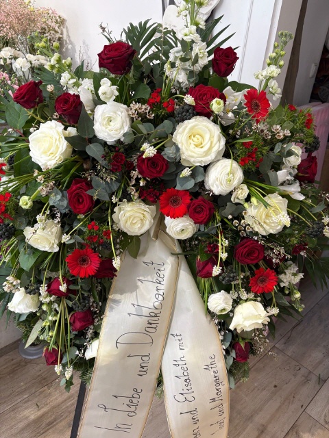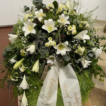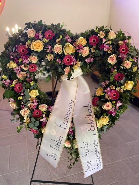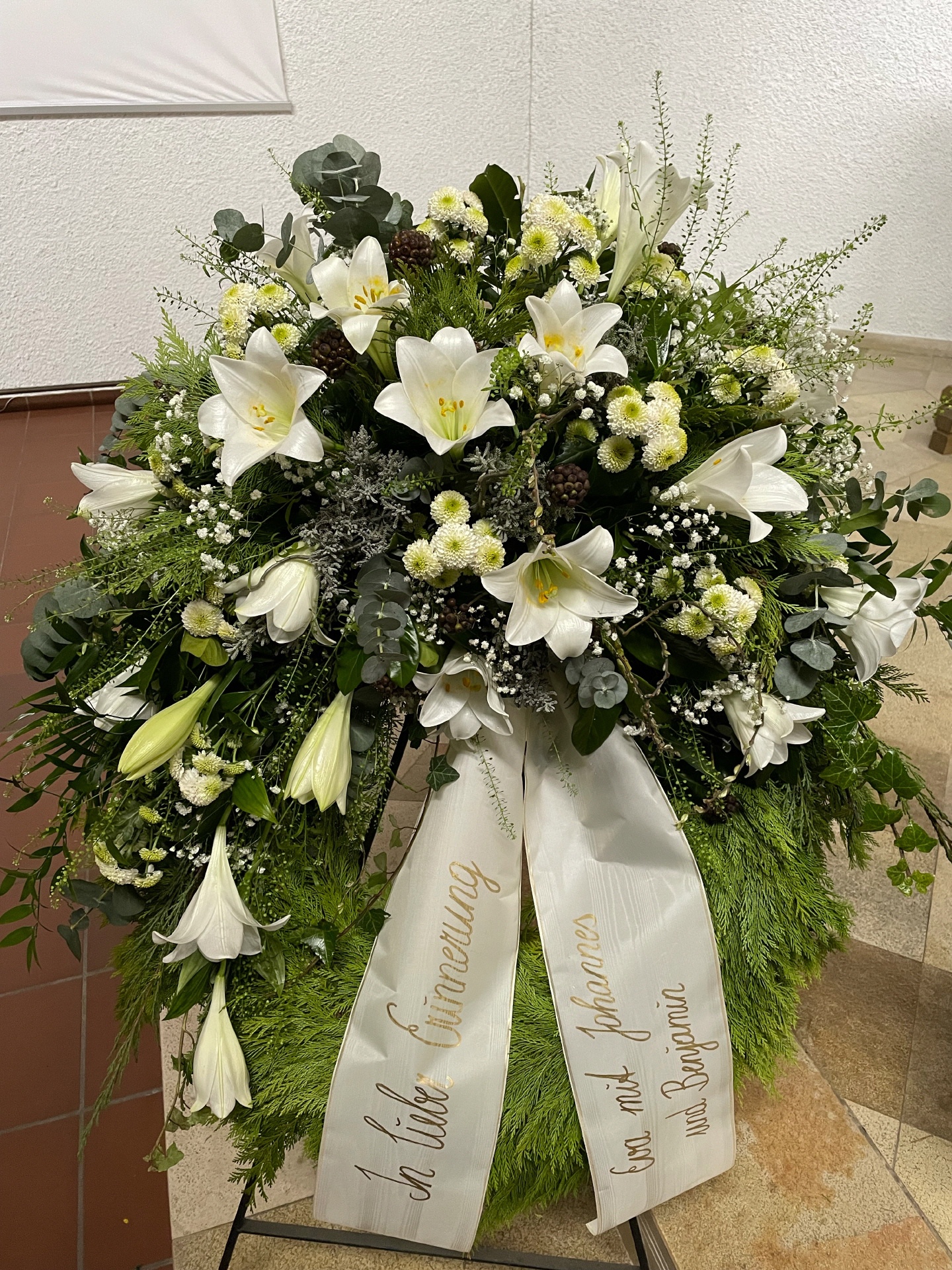 Trauerfloristik Was man tief in seinem Herzen besitzt kann man durch den Tod nicht verlieren.Gerne gestalten wir für Sie ganz nach persönlichen Wünschen:SarggesteckeTrauerbukettsKränzePflanzschalenUrnenschmuckFlorale Herzen, Kreuze und vieles mehr!