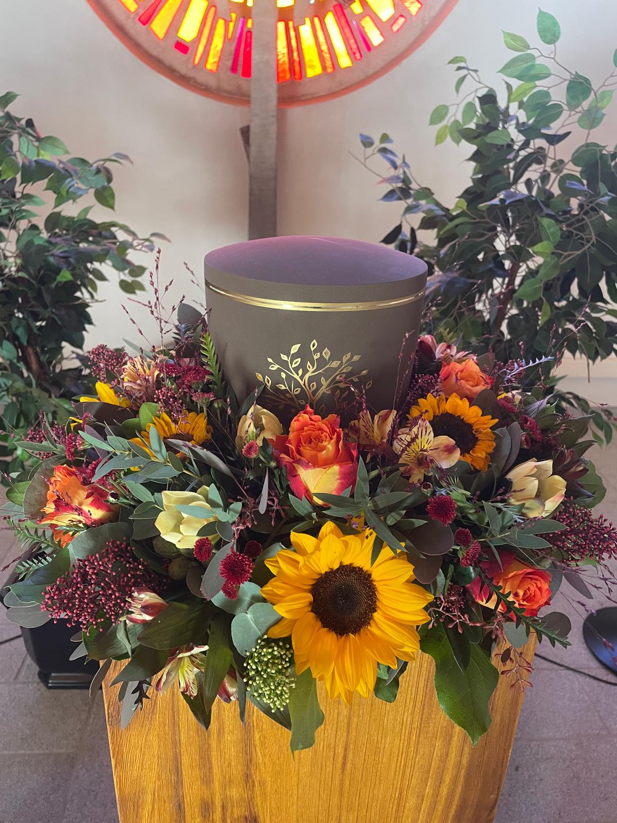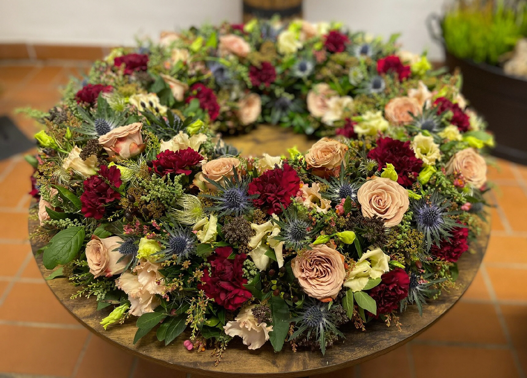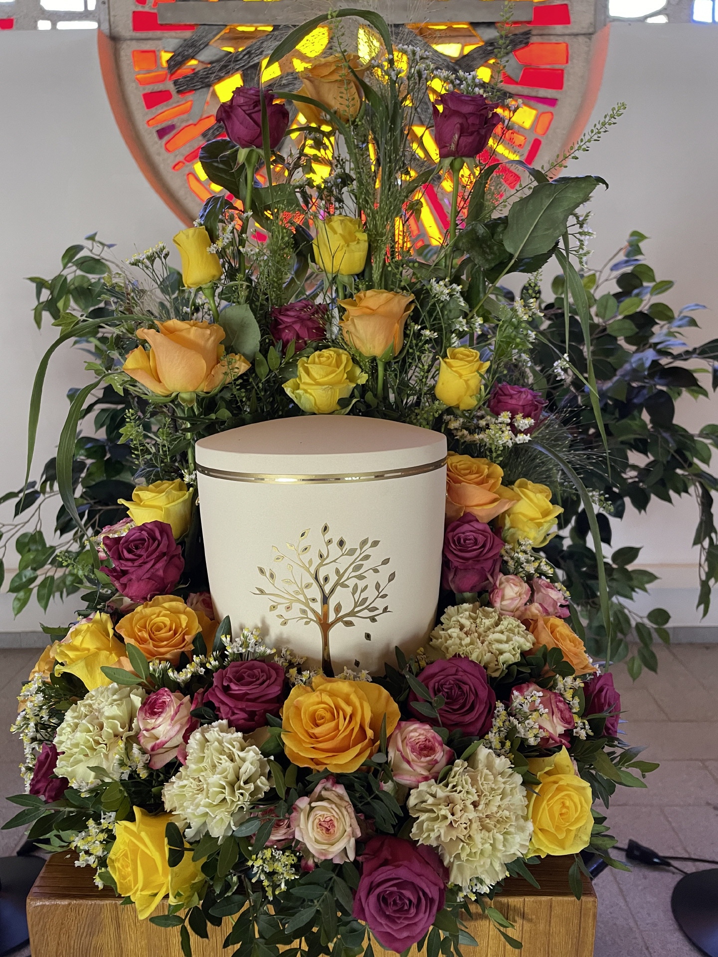Trauerfloristik Was man tief in seinem Herzen besitzt kann man durch den Tod nicht verlieren.Gerne gestalten wir für Sie ganz nach persönlichen Wünschen:SarggesteckeTrauerbukettsKränzePflanzschalenUrnenschmuckFlorale Herzen, Kreuze und vieles mehr!